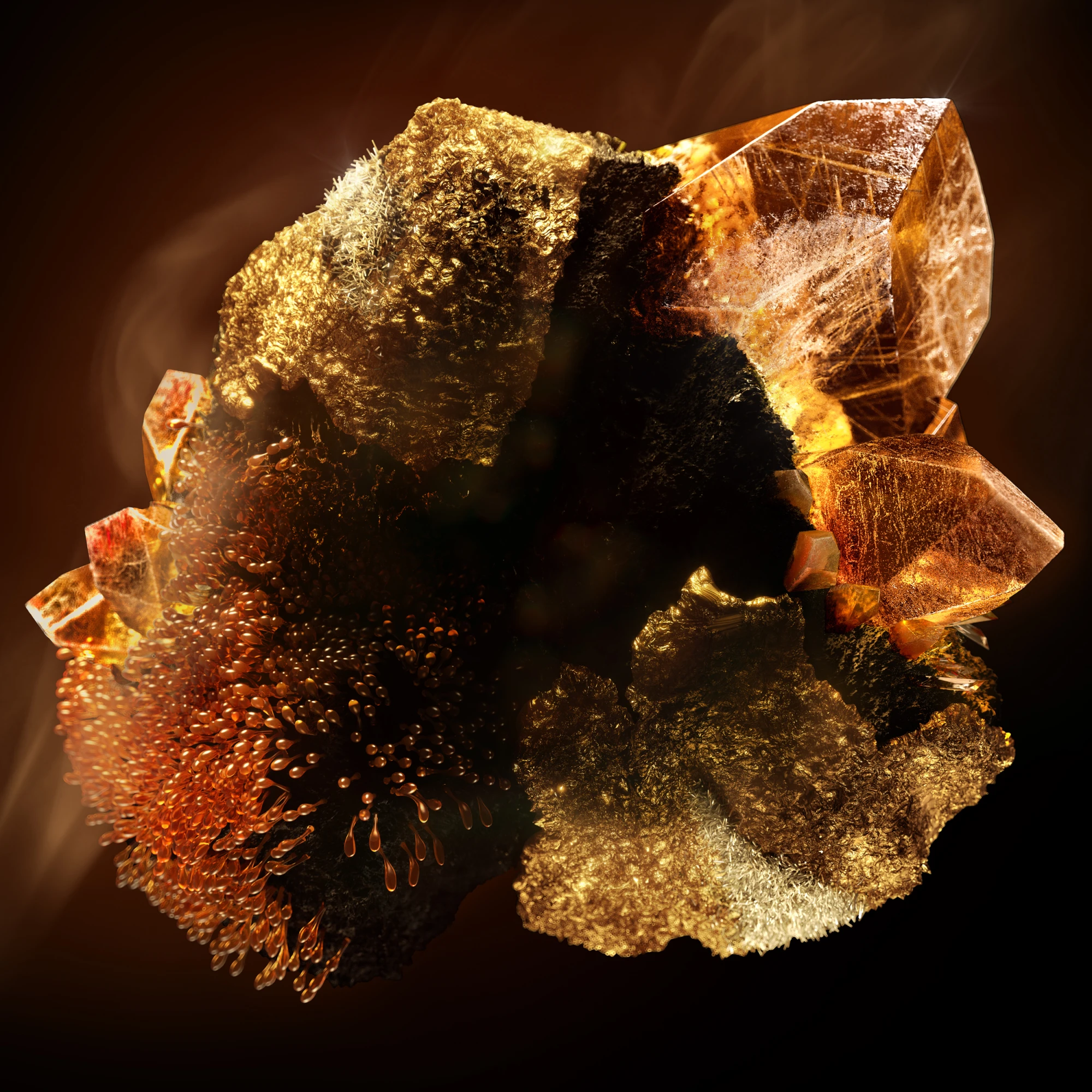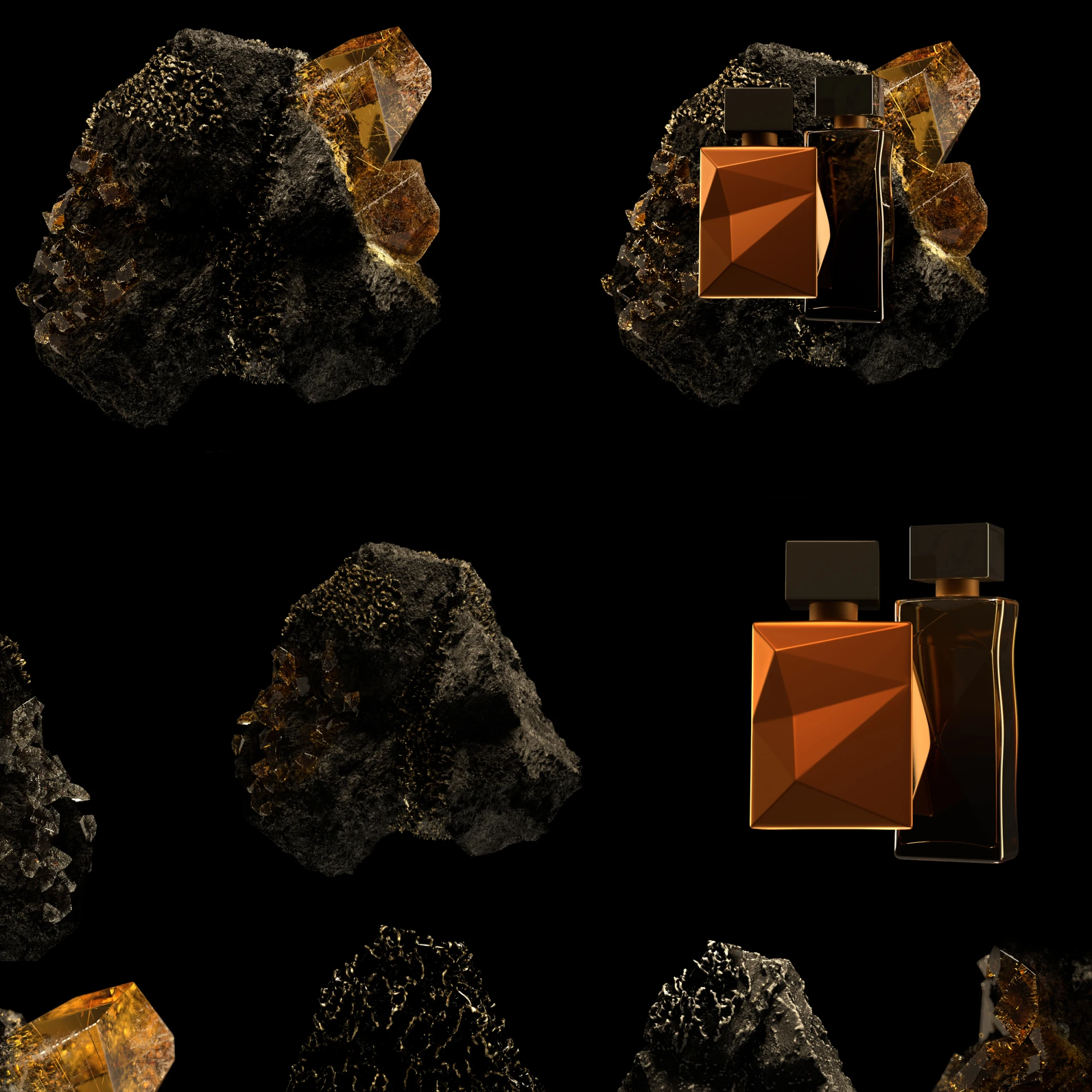 Foi aí que apareceu um layout lindo de Natura e nós tivemos o privilégio de produzir a imagem principal da Campanha de lançamento do Perfume Essencial Mirra. Tanto os frascos, quanto os cristais, pedras e os diversos elementos que a compõe foram construídos em 3D.