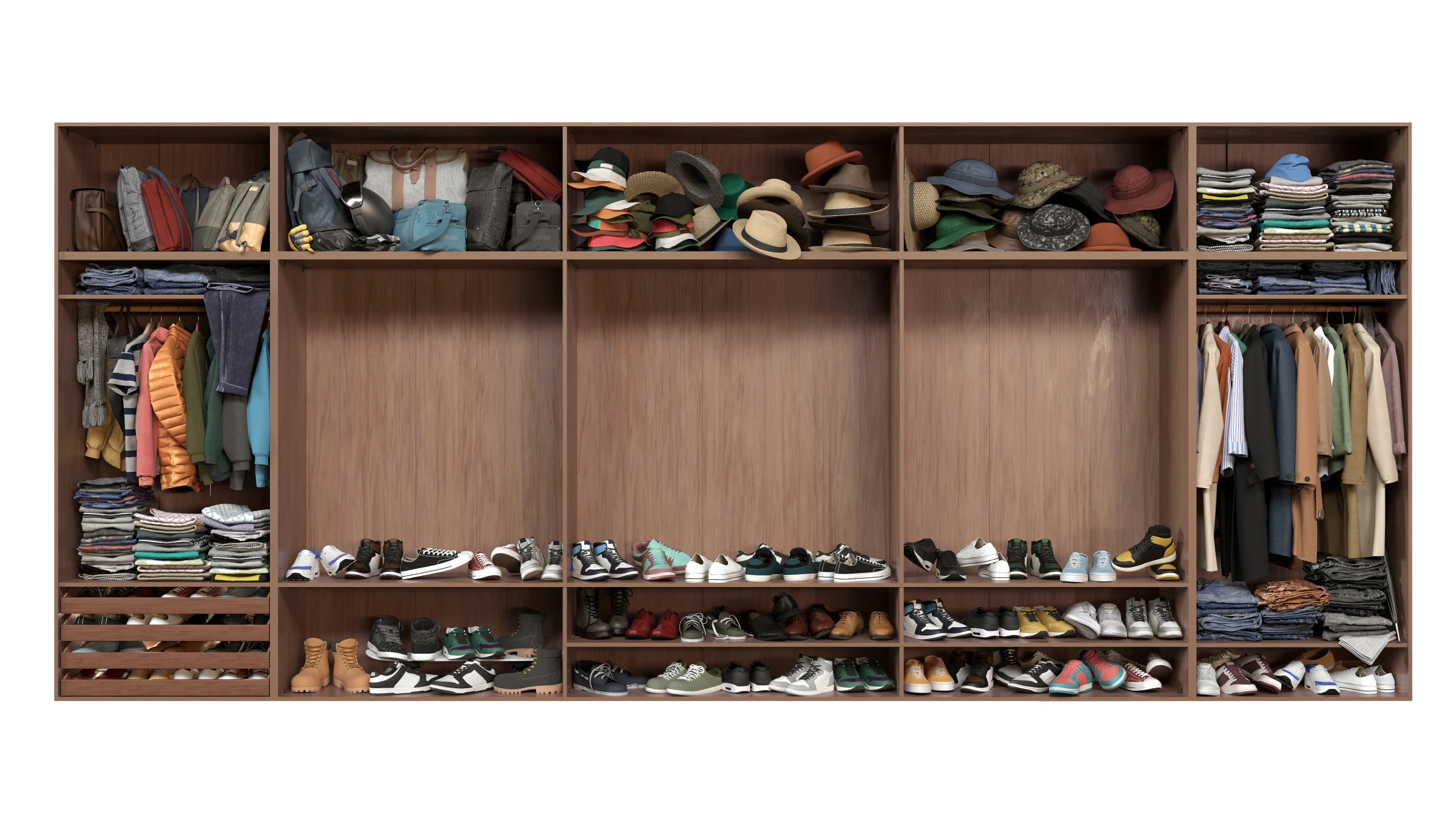 Para a Vinted, uma plataforma líder em compra e venda de roupas de segunda mão, produzimos três imagens inteiramente em ilustração 3D hiper-realista. O objetivo do projeto era adesivar um trem em Viena, Áustria, representando guarda-roupas visualmente cheios, com repetição de itens da mesma categoria, como casacos e chapéus. Foram desenvolvidos três perfis distintos: um masculino, um feminino chique e outro com um estilo mais despojado.