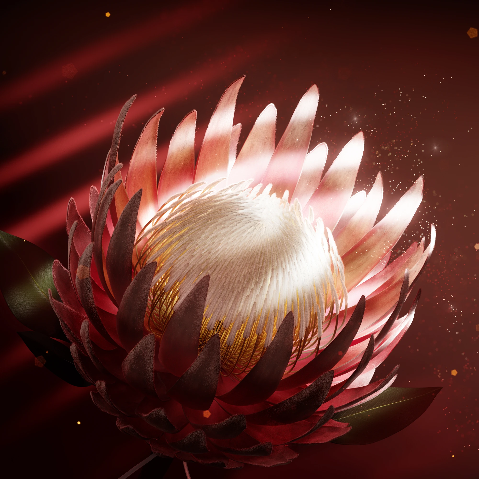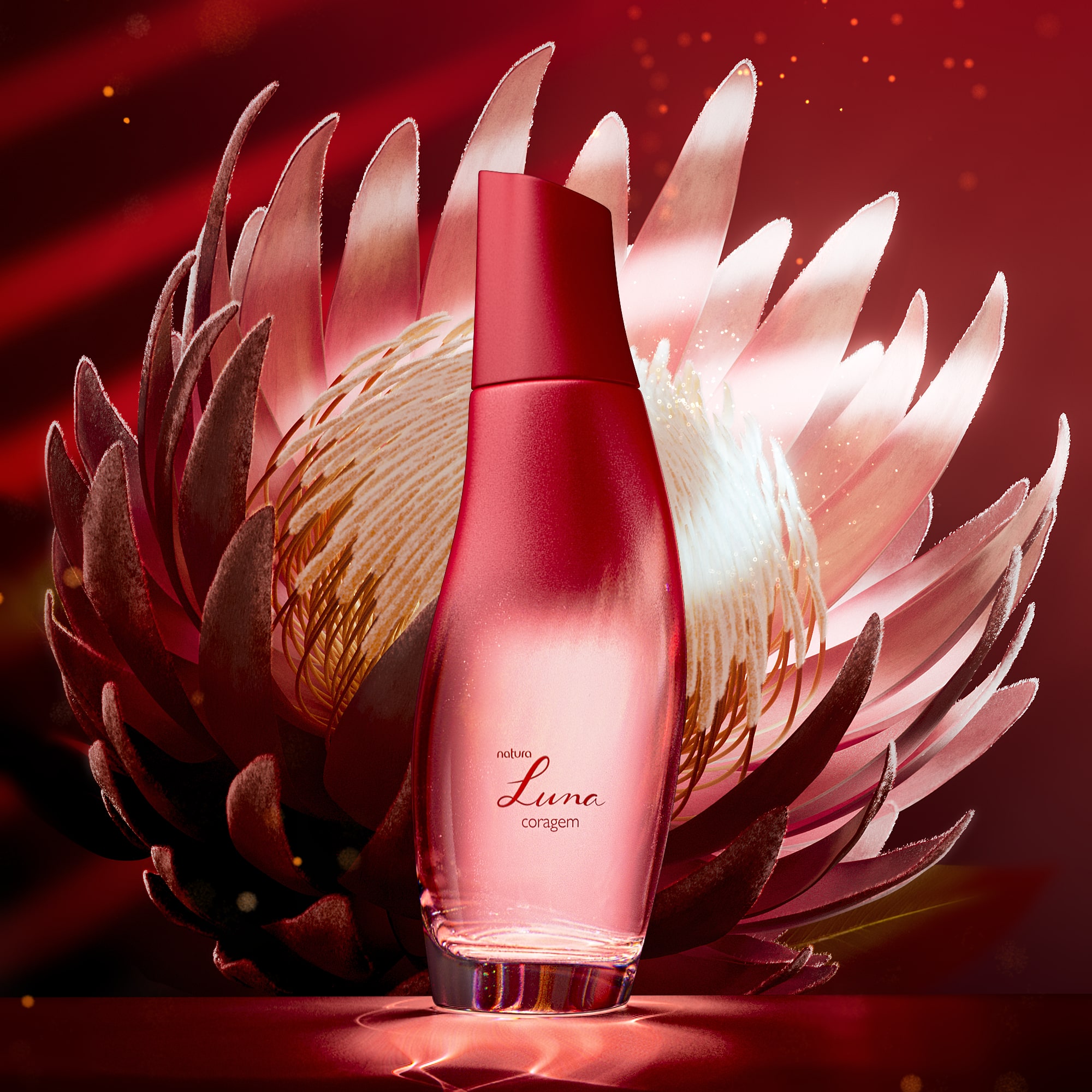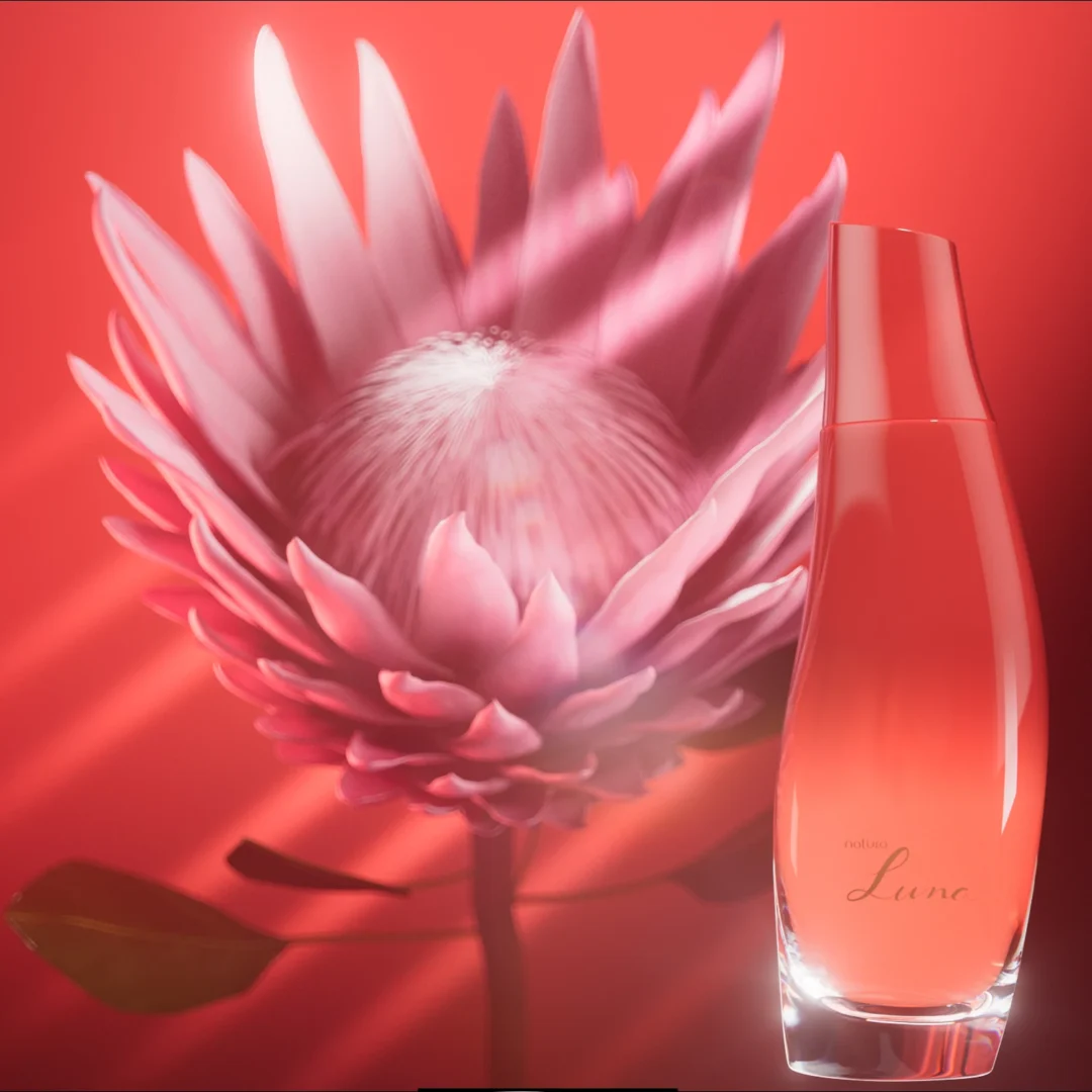 Construímos toda a cena em 3D e produzimos a animação da flor se abrindo, movendo delicadamente as pétalas e espalhando brilhos – Elementos orgânicos e fluidos sempre apresentam desafios, mas, ao longo dos anos, fomos nos especializando nessa construção detalhada, tornando essa complexidade uma das nossas maiores especialidades.